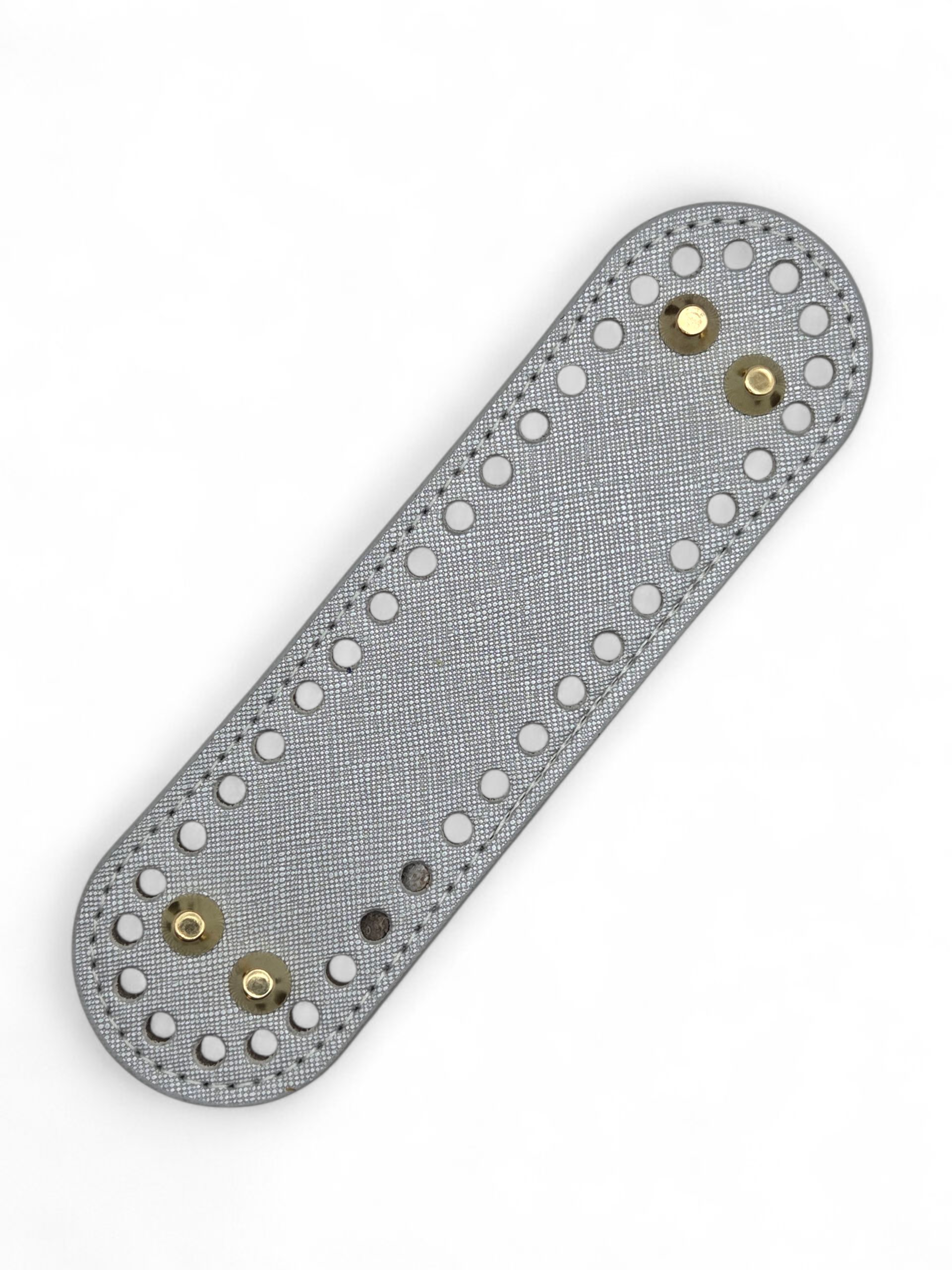 Dno z eko skóry – świetne do wyrobu torebek, worków, plecaków lub koszyków. Posiada małe otwory (Ø4 mm), dlatego zaleca się wykonanie pierwszego okrążenia szydełkiem w mniejszym rozmiarze.